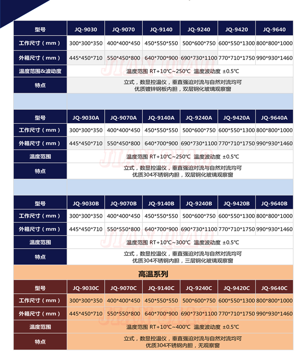 產(chǎn)品型號:JQ-9640 品牌:劍 喬 用途:精密高溫箱用于對電子電工、汽車摩托、航空航天橡膠、塑膠、金屬、船舶兵器、高等院校、科研單位等相關(guān)產(chǎn)品的零部件及材料在高溫恒溫變化的情況下,檢驗其各項性能指標(biāo)。咨詢熱線:13829135130