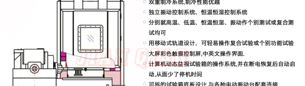 產(chǎn)品型號:JQTHV-1000 品牌:劍 喬 用途:三綜合試驗箱:主要是試驗箱和振動試驗系統(tǒng)的綜合,試驗時將溫度、濕度、振動(高溫或低溫),(正弦振動或隨機(jī)振動)以及電應(yīng)力按規(guī)定的周期綜合在同一氣候試驗箱中施加到咨詢熱線:13829135130
