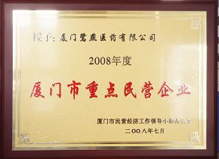 近日,經(jīng)市政府第35次常務會議研究確認, “2008年度廈門市重點民營企業(yè)”名單已正式公布,廈門鷺燕醫(yī)藥有限公司繼2006年之后再次獲此殊榮。 據(jù)相關負責人介紹,該評選活動每兩年舉行一次,主要針對在廈門注冊,在所從事行業(yè)處于領先地位,獲得相關行業(yè)部門、社會團體或同類型企業(yè)普遍認可的民營企業(yè)。 本次共評選出60家重點民營企業(yè),鷺燕醫(yī)藥2007年度銷售收入近10億元,比上年增長36.9%。作為唯一的一家醫(yī)藥流通企業(yè)入選,彰顯了企業(yè)的行業(yè)地位。此次獲選肯定了公司的經(jīng)營業(yè)績,同時也激勵著公司發(fā)揮優(yōu)勢、克服困難,繼續(xù)保持企業(yè)健康、可持續(xù)發(fā)展能力,力爭在新的一年里再創(chuàng)佳績,實現(xiàn)集團股份制改造后經(jīng)營質量有質的飛躍,為全社會的健康事業(yè)做出新的更大的貢獻。