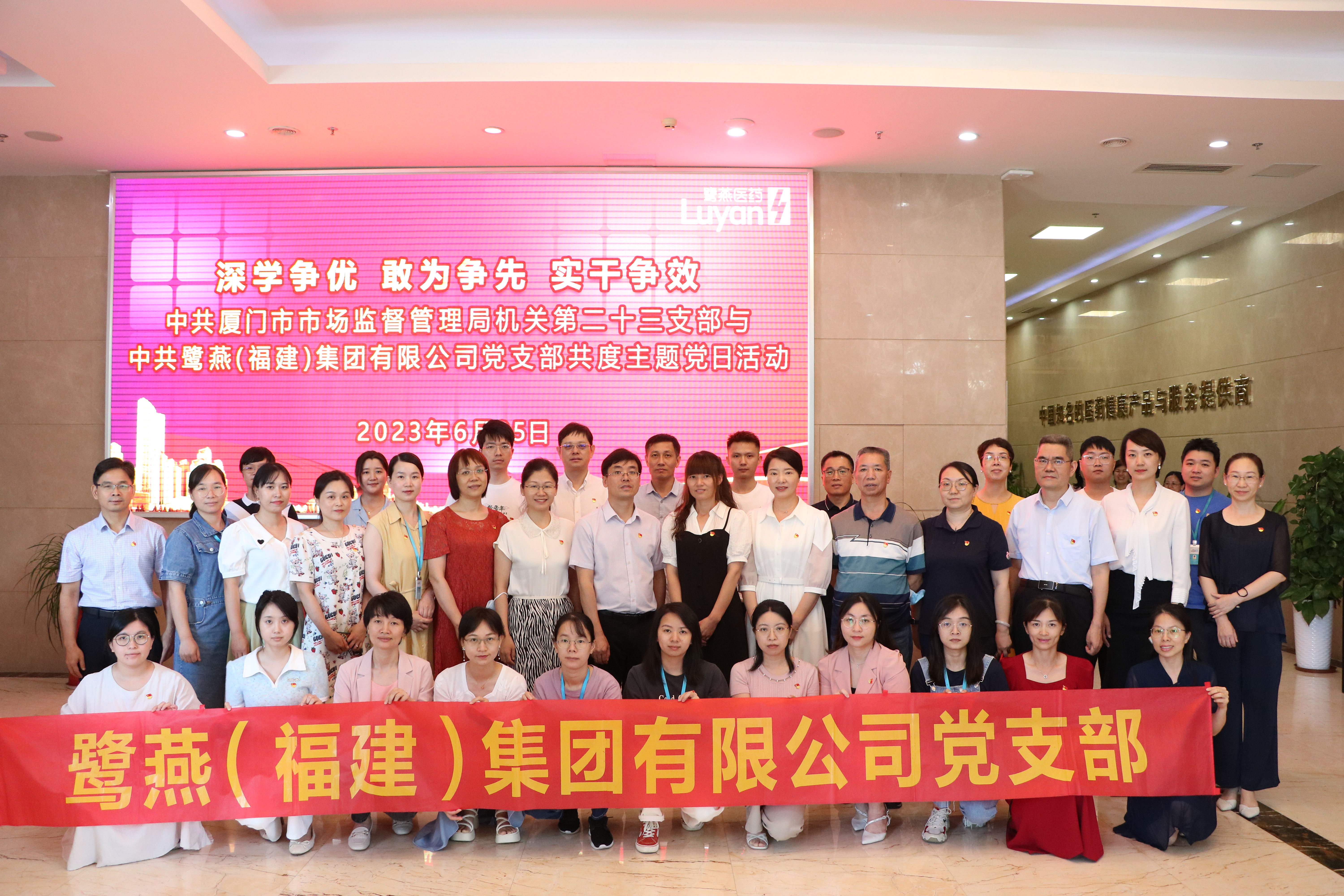 為深入學(xué)習(xí)貫徹黨的二十大精神,慶祝中國共產(chǎn)黨成立102周年,充分發(fā)揮黨建工作對企業(yè)經(jīng)營管理的引領(lǐng)力,鷺燕(福建)集團有限公司黨支部積極主動對接監(jiān)管部門基層黨支部,與中共廈門市市場監(jiān)督管理局機關(guān)第二十三支部共同開展主題黨日活動。2023 年6月25日, 活動在鷺燕總部大廈如期舉行,中共廈門市市場監(jiān)督管理局機關(guān)第二十三支部全體黨員、鷺燕(福建)集團有限公司黨支部黨員以及鷺燕集團廈門區(qū)域部分成員公司總經(jīng)理、質(zhì)管干部參加了活動。