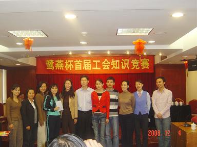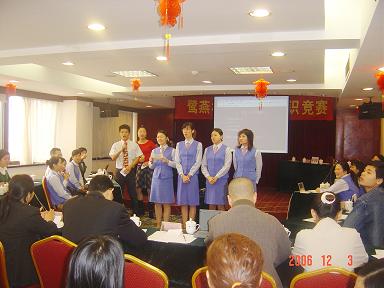 廈門鷺燕大藥房有限公司于2006年12月3日在廈門廬山大酒樓隆重舉行鷺燕杯首屆工會知識競賽,此次工會知識競賽由6個工會小組各自選派4名選手參加,比賽環(huán)節(jié)包括團隊介紹、啦啦隊互動、演講比賽、必答題、搶答題、猜詞秀、才藝表演等,形式多樣、內(nèi)容豐富。比賽現(xiàn)場還邀請了一些供應商的代表作為嘉賓評委,為比賽進行現(xiàn)場點評及頒獎。