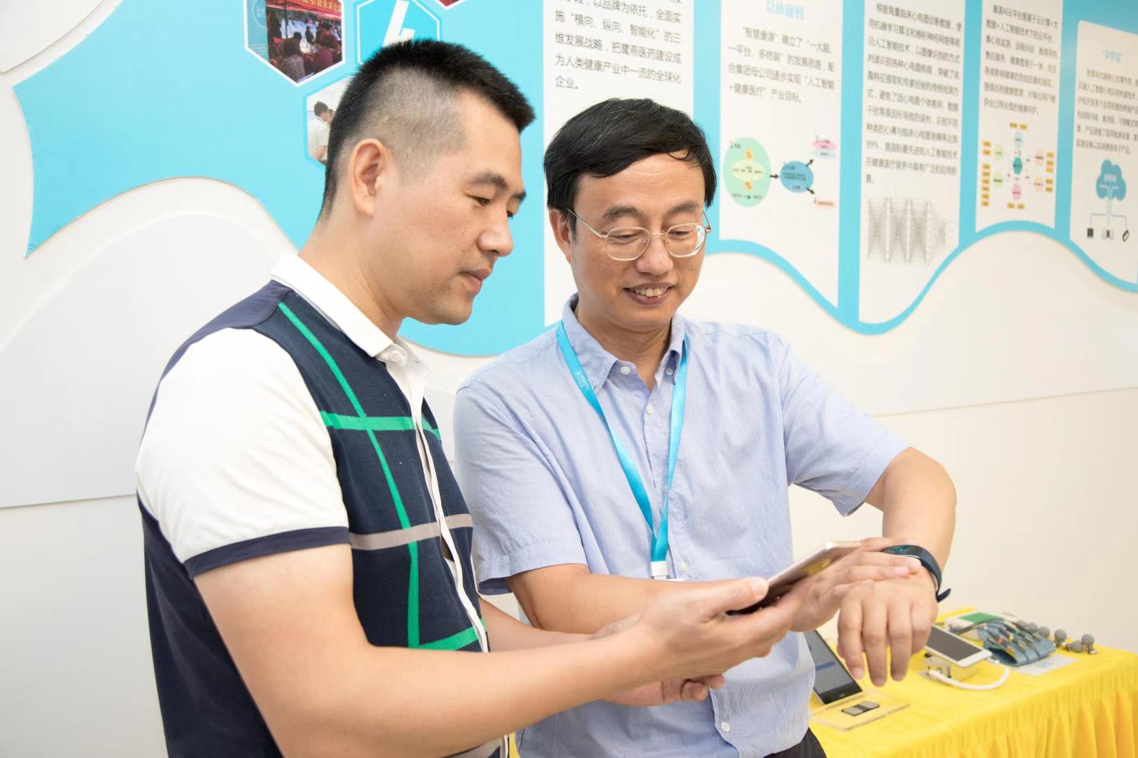 不過,在今年的第十六屆“6·18”中國·海峽項(xiàng)目成果交易會上,鷺燕醫(yī)藥旗下福建省康源圖像智能研究院(以下簡稱:康源研究院)讓人們足不出戶查心電圖成為了現(xiàn)實(shí)。經(jīng)過近兩年的沉淀,康源研究院成功研發(fā)出了“人工智能心電圖識別判讀系統(tǒng)”,并適時推出了一款名為“AI心手環(huán)”的應(yīng)用產(chǎn)品。只要戴上這個手環(huán),將手指夾在手環(huán)的觸點(diǎn)上,打開手機(jī)APP,就會實(shí)時顯示心電圖,血壓、心率一目了然,數(shù)據(jù)傳輸?shù)皆贫送瓿膳凶x后,還會得出健康建議反饋給用戶,儼然就是一個便攜式家庭智能醫(yī)生。