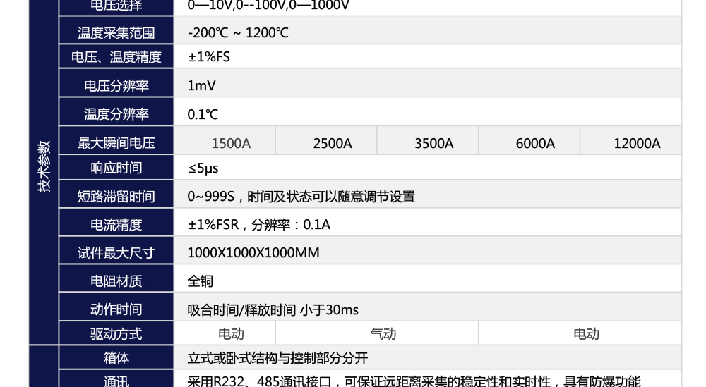 產(chǎn)品型號:JQ-5000A 品牌:劍 喬 用途:大電流短路試驗裝置綜合多種電池短路試驗標準要求而設計,按標準要求短路裝置必須符合內(nèi)阻范圍≤5mΩ,從而獲得試驗要求的最大短路電流;另外在短路裝置的線路設計上也須能夠承咨詢熱線:13829135130